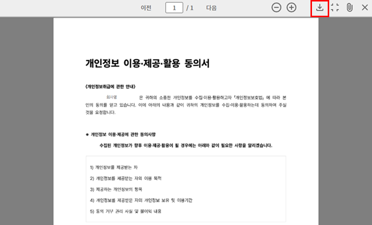 이싸인온에 로그인 되어있다면, 진행 중인 문서는 문서를 열고 오른쪽 상단에 다운로드 버튼을 통해 파일을 내려받으실 수 있습니다.